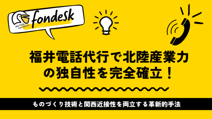 福井特化型ものづくり独自性活用電話代行サービスの活用は、福井の眼鏡・繊維などものづくり専門性と関西近接性を完璧に活用した対応を提供し、人材流出を解決しながら北陸経済圏での競争力を最大化する最も効果的な選択肢です。福井企業の独自価値創出と成長最大化を両立できます。