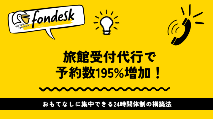 予約を最大化し、選ばれる旅館を実現したい経営者・女将の皆様には、受付代行により、おもてなしと経営の両立を実現することをお勧めします。特に低コスト・高品質・即日導入可能なfondeskなら、リスクなく始められます。せっかく導入するなら、紹介コード「FV756」で特典を受けながら始めることをお勧めします。