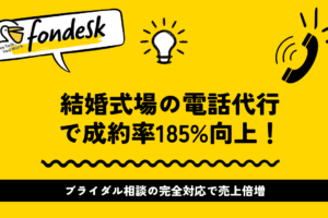 成約率を向上させ、選ばれる式場を実現したいブライダル経営者の皆様には、電話代行により、問い合わせ完全対応と売上倍増を実現することをお勧めします。特に低コスト・高品質・即日導入可能なfondeskなら、リスクなく始められます。せっかく導入するなら、紹介コード「FV756」で特典を受けながら始めることをお勧めします。