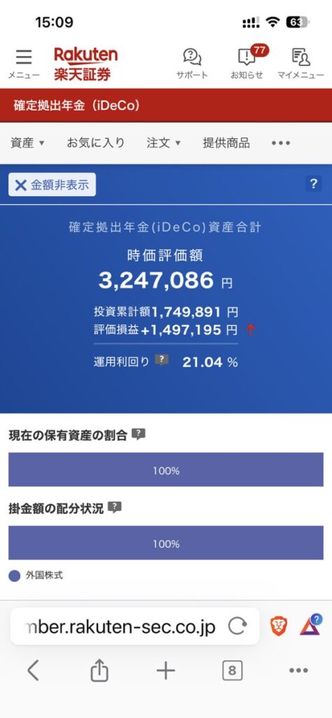 ・会社員時代の5年?(401K)が40万程あったので楽天証券に移管手続き(※移管方法は人によって違うので省きます。)