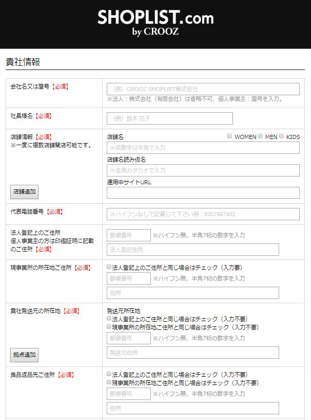 SHOPLISTの出店のご検討状況「すぐに出店したい」を選ぶと必要情報入力ページへ遷移します。